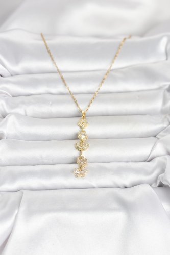 316L Çelik Gold Renk Şans Kolyesi Y Model Zirkon Taşlı Kadın Kolye