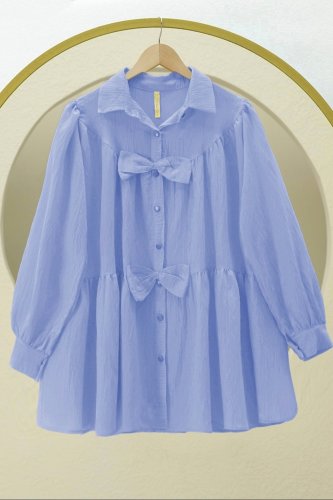 Önü Fiyonk Detaylı Parçalı Gömlek -Bebe Mavi