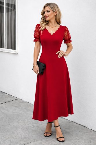 Kadın kısa kollu v yakalı uzun janjan elbise