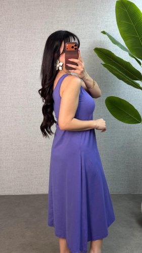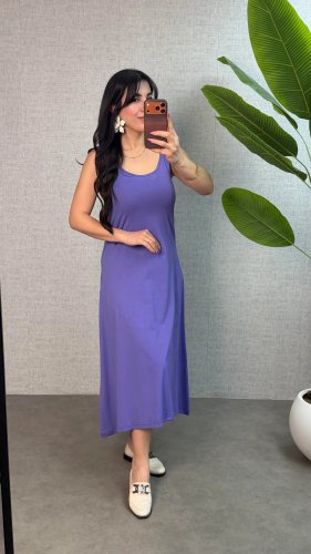 Kadın askılı yuvarlak yaka süprem kumaş elbise
