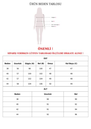 Bu, bedeninizi bulmanıza yardımcı olacak yaklaşık tablodur.