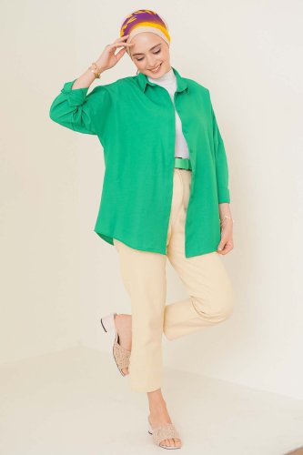103901 Oversize Basic Tesettür Gömlek - Yeşil