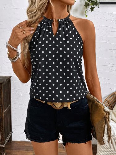 Kadın kolsuz boyundan hakla detaylı leopar süprem bluz