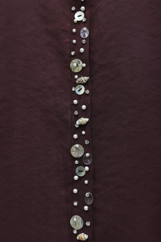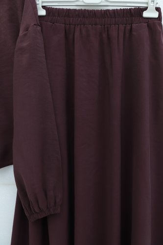 Kolu Lastikli Önü İncili Düğmeli Etekli Modal Takım -Bordo