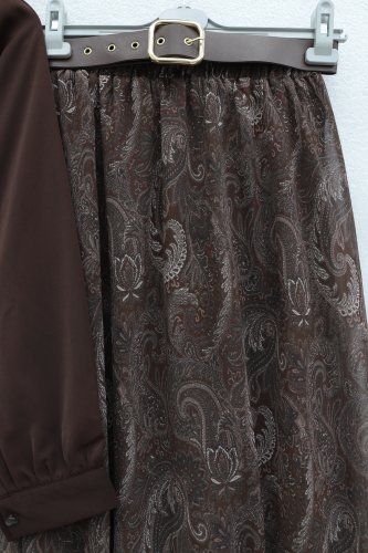 Beli Kemerli Fularlı Astarlı Etekli Şifon Takım -K. Kahve