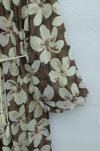 Robadan Büzgülü Kemerli Astarlı Şifon Elbise -Kahve