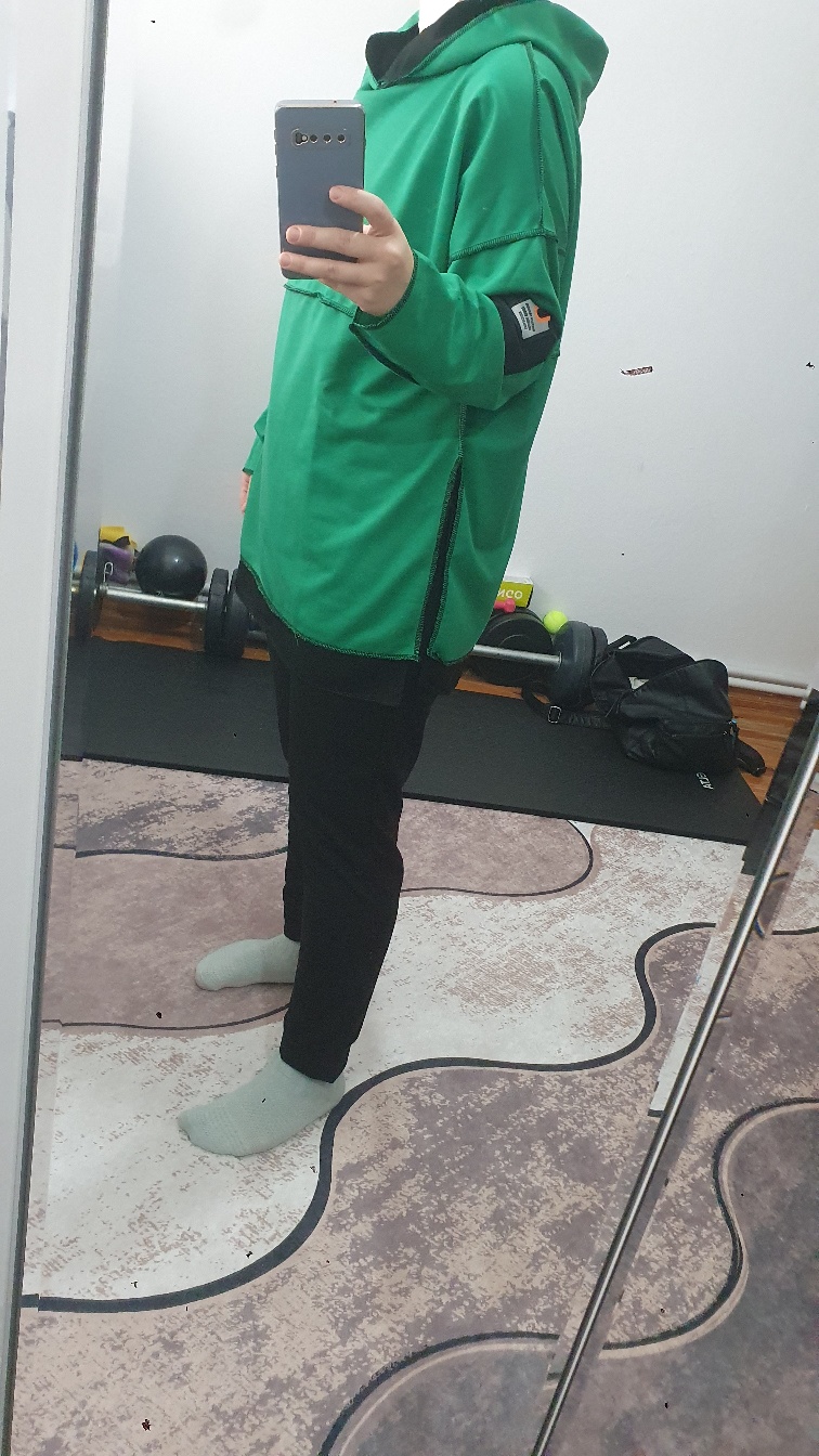 Kadın yeşil kapşonlu etek ucu detay arma ters dikiş gorunumlu ikili takım