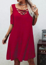 Dekolteli Bağcık Detay Viskon Kumaş Elbise