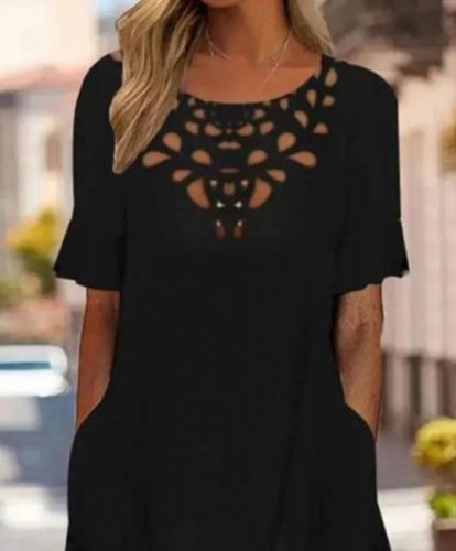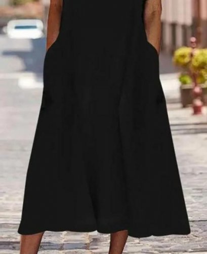 Kadın sandy kumaş lazer kesim cepli midi boy elbise