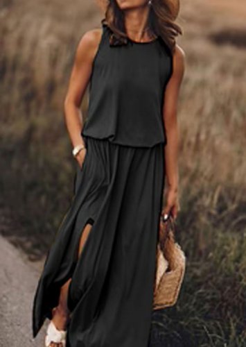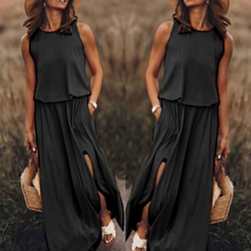 Kadın kolsuz yırtmaçlı viskon elbise xxx