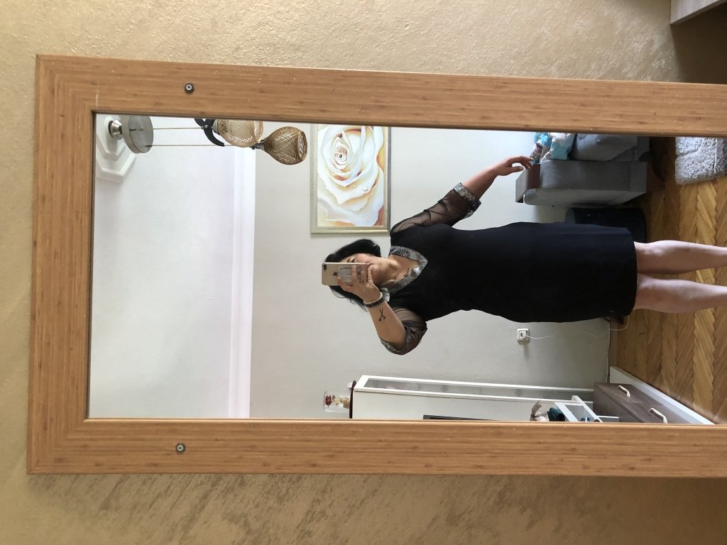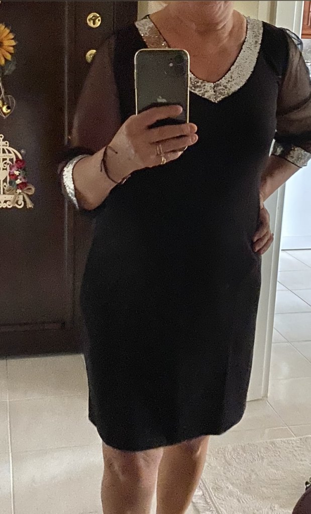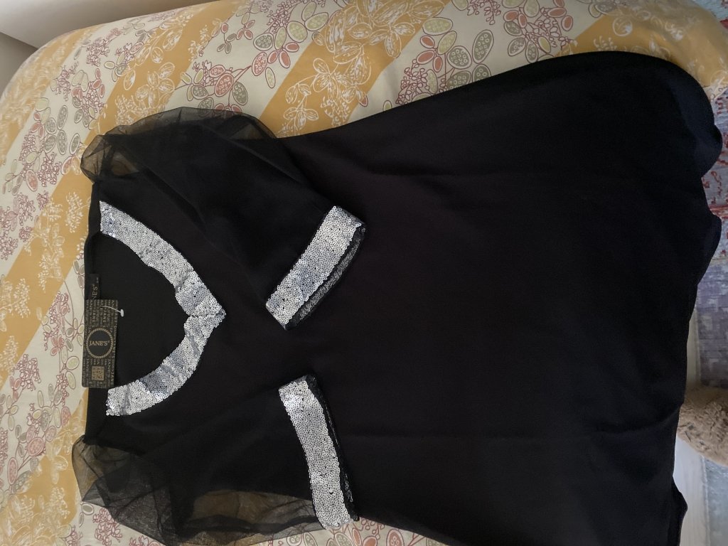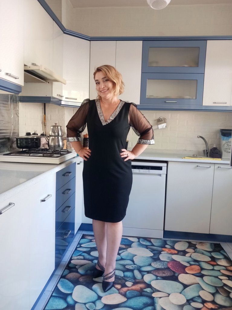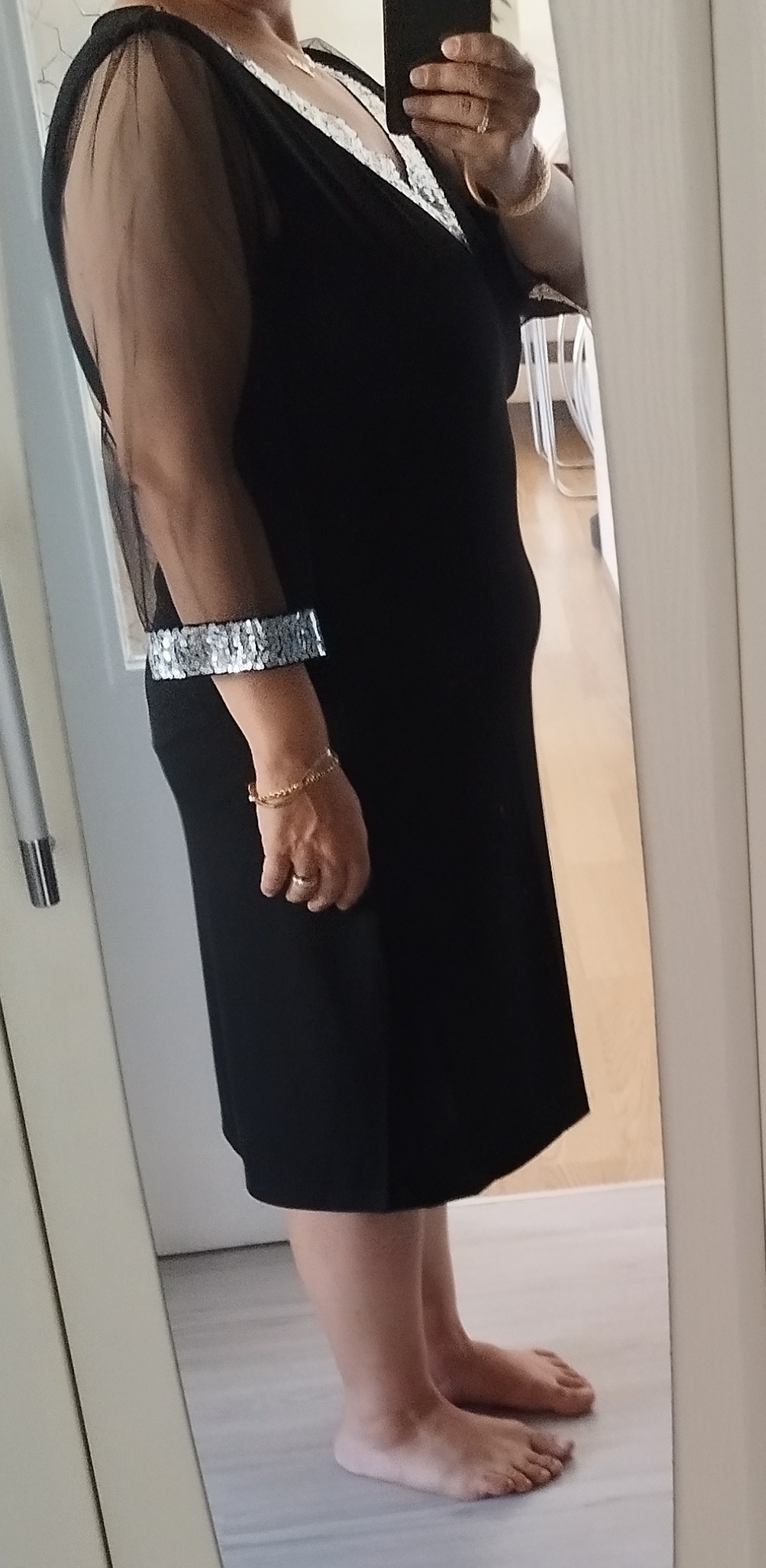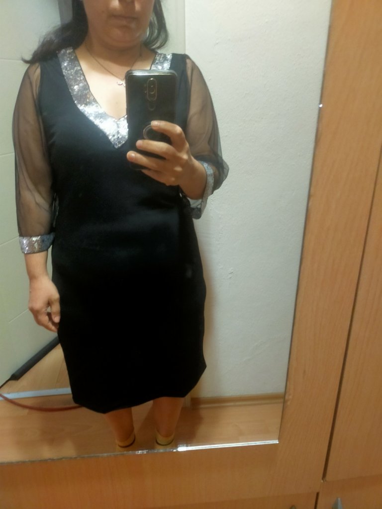 Kadın fakir kollu V yaka kollar tüllü yaka ve bilekler payet detay krep elbise