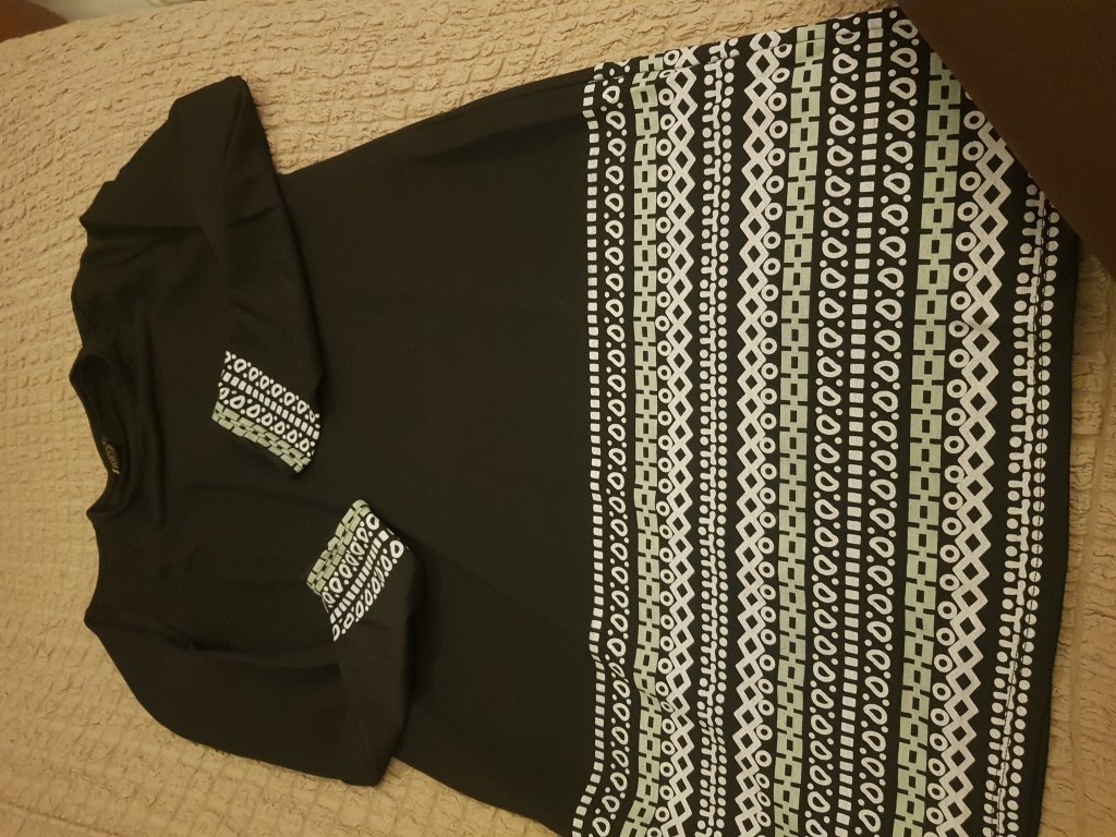 Kadın uzun kollu bisiklet yaka kol ağzı ve etek ucu baskılı iki iplik elbise