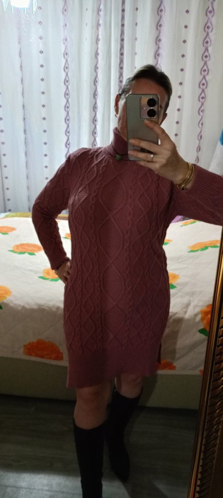 Kadın uzun kollu loren yünlü motifli midi boy triko elbise