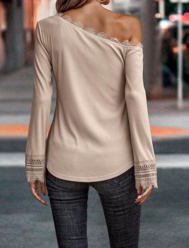 Kadın uzun kollu düşük omuz yaka ve kol güpür detay bürümcük kumaş bluz