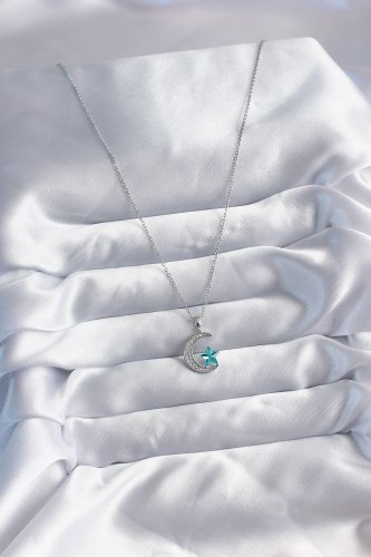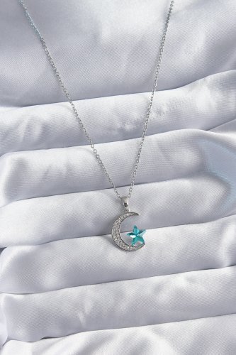 316L Çelik Gold Renk Zincir Zirkon Taş Hilal Yıldız Model Kadın Kolye