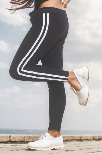 Büyük Beden Şeritli Tayt Siyahbeyaz
