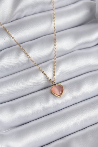 316L Çelik Gold Renk Pembe Sedefli Kalp Model Kadın Kolye