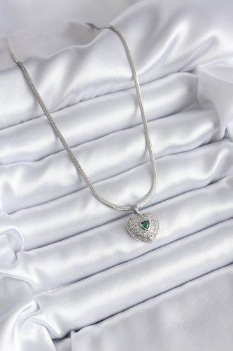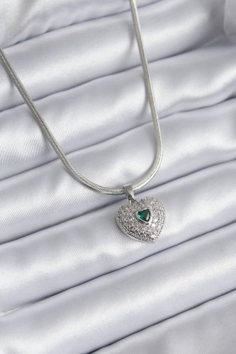 316L Çelik Gümüş Renk Zirkon Taşlı Kalp Model Kadın Kolye