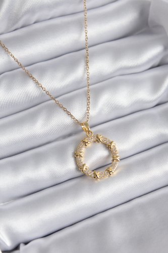 316L Çelik Gold Renk Zirkon Taşlı Xoxo Model Kadın Kolye