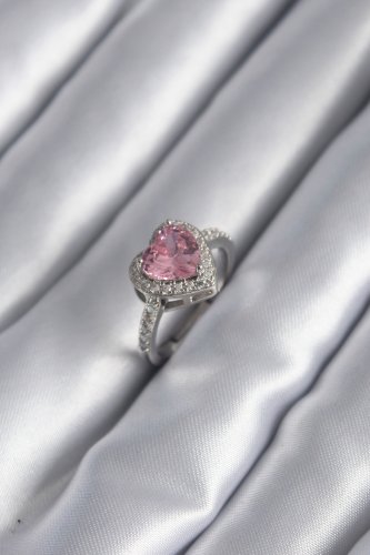 Gümüş Renk Pembe Zirkon Taşlı Kalp Model Kadın Yüzük