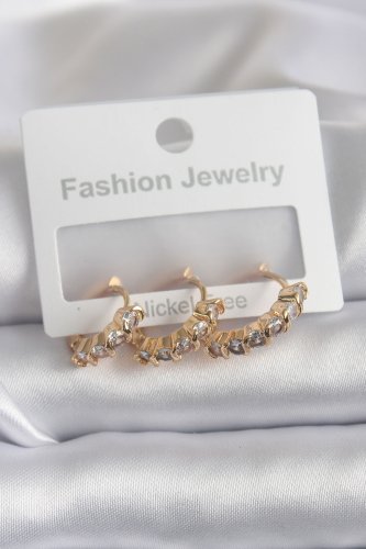 Pirinç Gold Renk Zirkon Taşlı Kadın Küpe