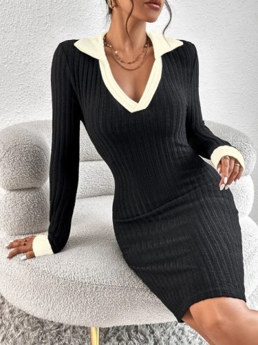 Kadın uzun kollu şardonlu gömlek yaka ve manşet detay kaşkorse elbise
