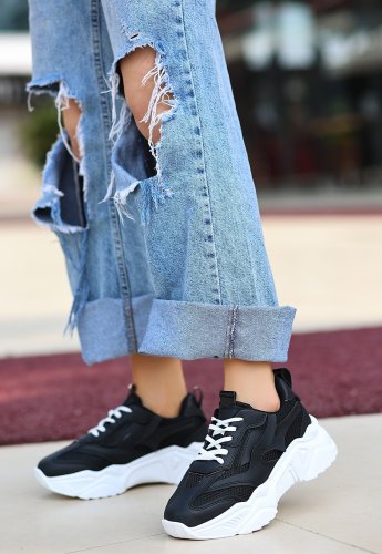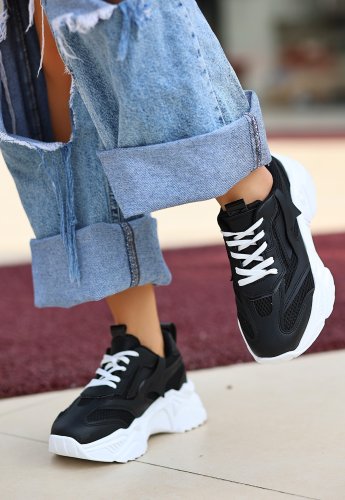 Dica Siyah Cilt Beyaz Tabanlı Bağcıklı Spor Ayakkabı