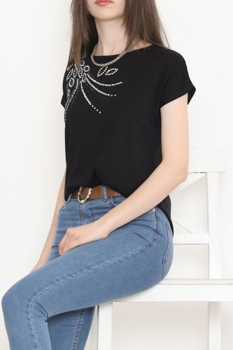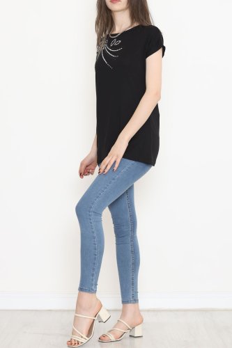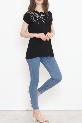 Pul Detaylı Bluz Siyah