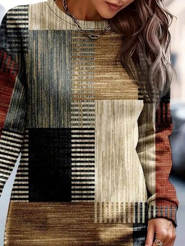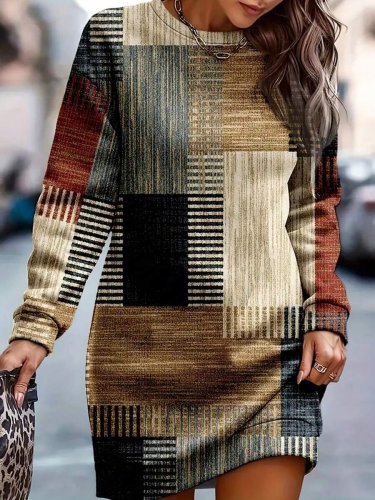 Kadın uzun kollu bisiklet yaka parça desenli şardonlu dalgıçelbise