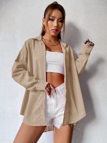 Kadın uzun kollu cep detay terikoton gömlek