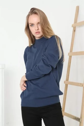 Yarım Balıkçı Yaka Triko Kazak - İndigo
