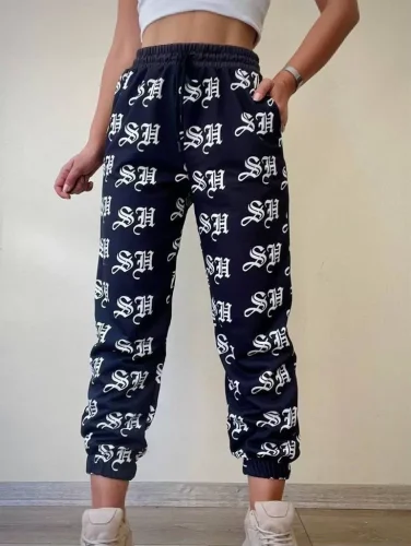 Sh Dijital Baskılı Bağcıklı Eşofman Altı - Siyah