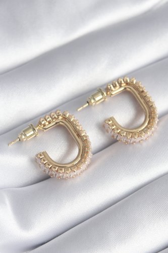 Pirinç Gold Renk Zirkon Taşlı Kadın Küpe