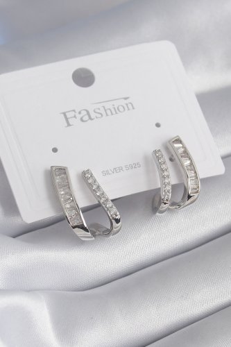 Pirinç Gümüş Renk Zirkon Taşlı Kadın Küpe