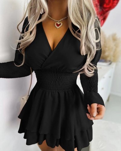 Kadın uzun kollu kruvaze yaka bel ve kol gipe detay sandy mini boy elbise