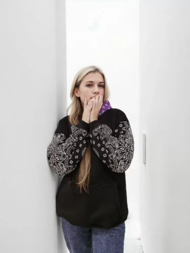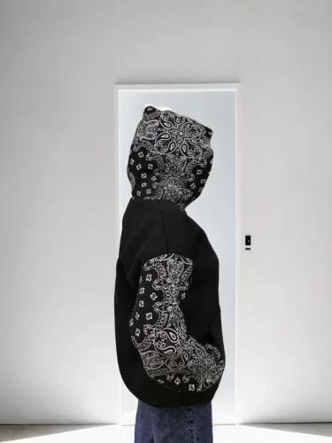 Baskılı Kapüşonlu Sweatshirt - Siyah