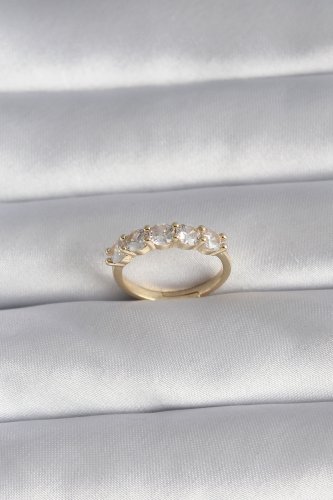 Pirinç Gold Renk Zirkon Taşlı 5 Taş Model Kadın Yüzük