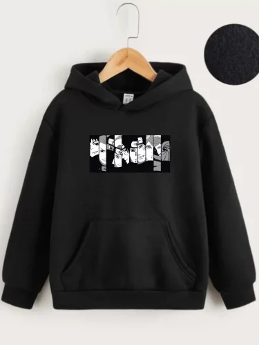 Çocuk Unisex Kapüşonlu Koyu Anime Baskılı Sweatshirt - Siyah