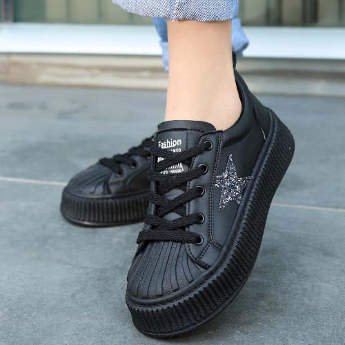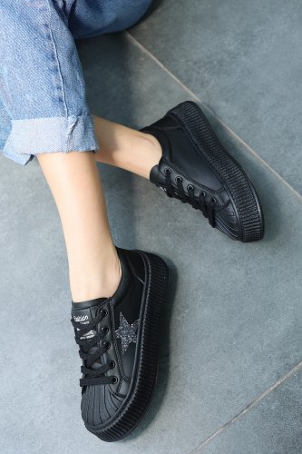 Piata Siyah Cilt Bağcıklı Spor Ayakkabı