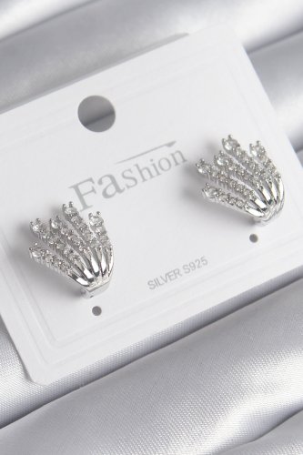 Pirinç Gümüş Renk Zirkon Taşlı Kadın Küpe