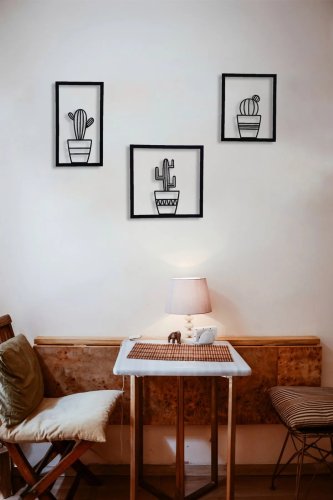 Wall Art Home Üçlü Kaktüs Set Metal Tablo 32x26x20