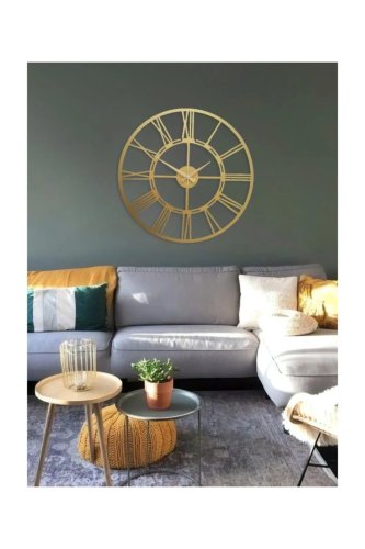 Wall Art Home Gold Classy Metal Duvar Saati - 50 X 50 cm