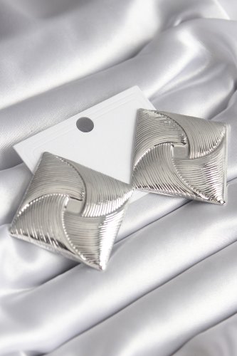 Pirinç Gümüş Renk Kare Model İşlemeli Kadın Küpe