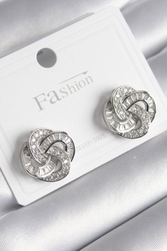 Pirinç Gümüş Renk Zirkon Taşlı Sarmal Model Kadın Küpe