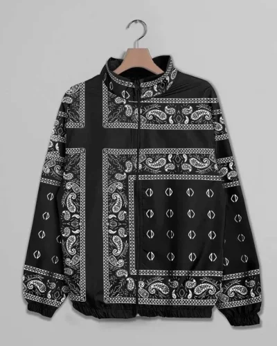 Erkek Dijital Baskılı Paraşüt Kumaş Rüzgarlık - Siyah