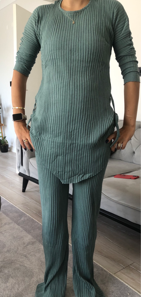 Kadın yandan kuşak detaylı fitilli kaşkorse kumaş ikili takım